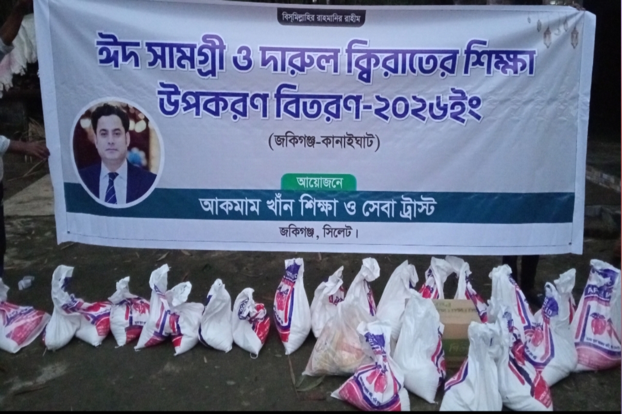জকিগঞ্জে আকমাম খাঁন শিক্ষা ও সেবা ট্রাস্টের যাত্রা শুরু,ঈদ সামগ্রী বিতরণ